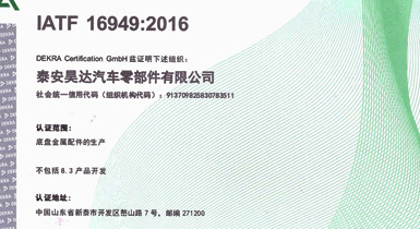 泰安昊達汽車零部件有限公司位于新泰市經濟開發區嶅山路7號,公司成立于2011年,是一家生產中、重型卡車底盤鑄鍛件、焊接件、發動機配件的專業廠家,廠區占地面積101畝,2018年建設年產300萬件汽車零部件項目,項目總投資3.16億元,總建筑面積3.6萬平方米,是新泰市汽車裝配產業鏈的重點項目、2018年、2019年泰安重點項目,現已建設完畢,于2019年1月1日正式投入使用,設備新上覆膜砂自動化鑄造生產線1條、熱模鍛生產線6條、自動化焊接生產線10條、CNC加工設備200余臺套。 主要產品:中、重卡車底盤配件、轉向配件、中后橋氣室支架總成、中后橋配件、前橋轉向節臂、焊接配件、發動機配件。產品主要銷往中國重汽集團、市場份額約50%,位居行業鑄件產品前三。 公司擁有IATF16949:2016國際標準質量管理體系認證,擁有實 ......